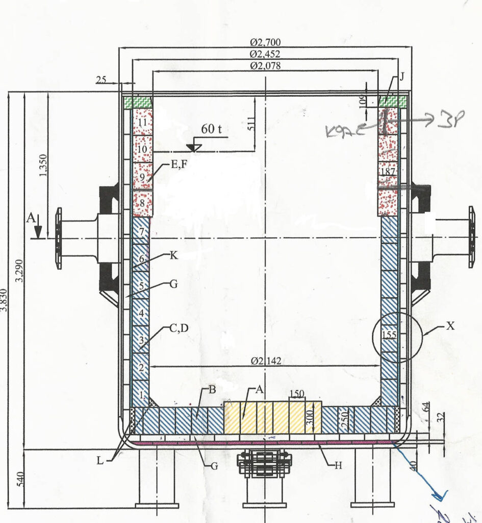 - Working lining: High-grade magnesia-carbon brick (MgO-C) or dolomite brick, resistant to slag corrosion.